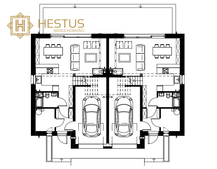 Powierzchnia każdego lokalu: 124,89 m².Garaż w bryle budynku.