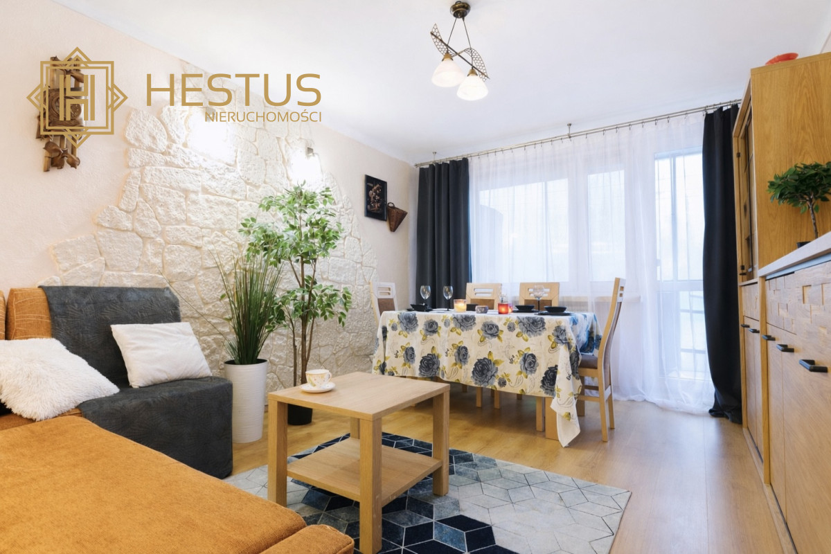 Mieszkanie składa się z trzech ustawnych pokoi, w tym przestronnego salonu z wyjściem na duży balkon, idealny do wypoczynku. Osobna kuchnia jest w pełni umeblowana i wyposażona w sprzęt AGD. Lokal sprzedawany jest z umeblowaniem.