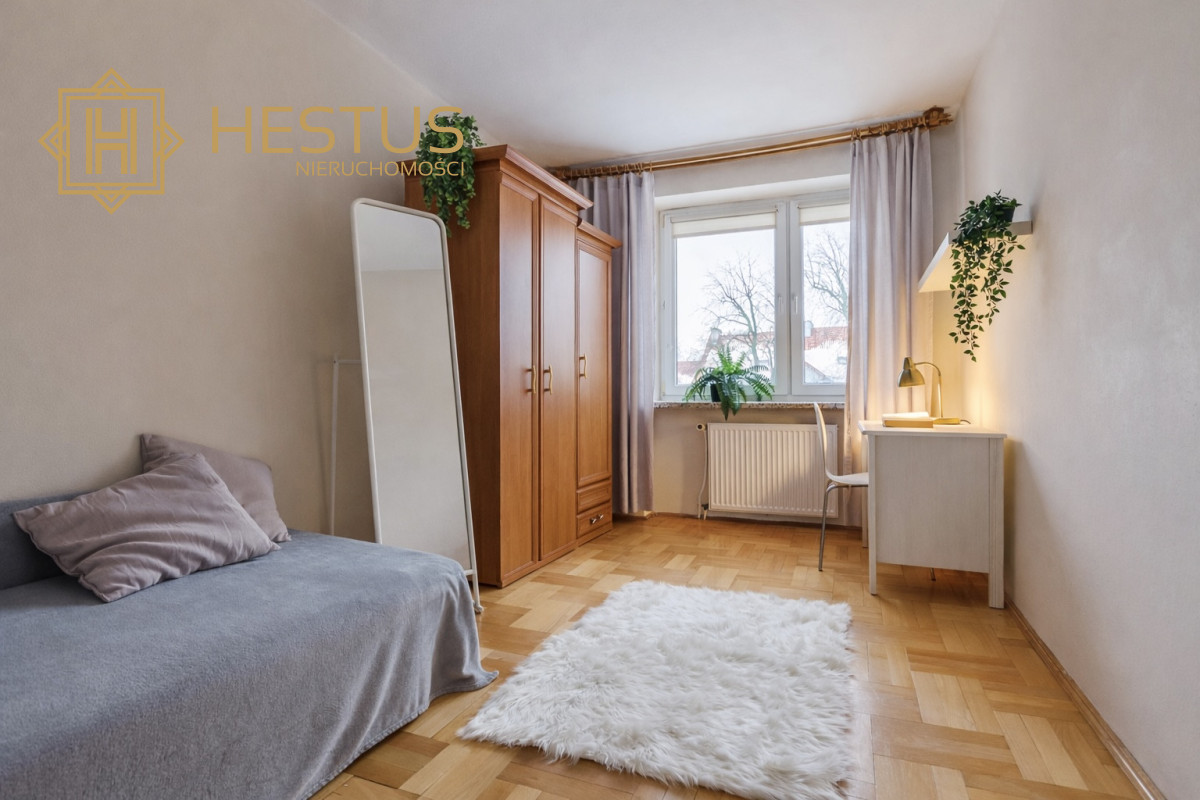 Mieszkanie składa się z 4 odrębnych, nieprzechodnich pokoi , kuchni w aneksie kuchennym otwartej na przedpokój, łazienki z wanną, osobnym WC.